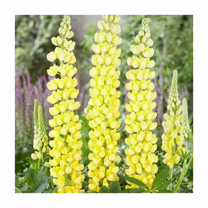 Flowering from early to mid-Summer, Lupin ‘Desert Sun’ will bear erect spikes of small custard-yellow flowers. The pale-green colouring of this lupin’s palmate foliage and stalk accentuates the softer tones of their dense blooms. Therefore, your Summer garden will be graced with a beautiful display that will be present for many weeks. Due their tall height, this perennial will establish beautiful structure within your garden, particularly when planted in the back of borders accompanying other pastel-coloured varieties.