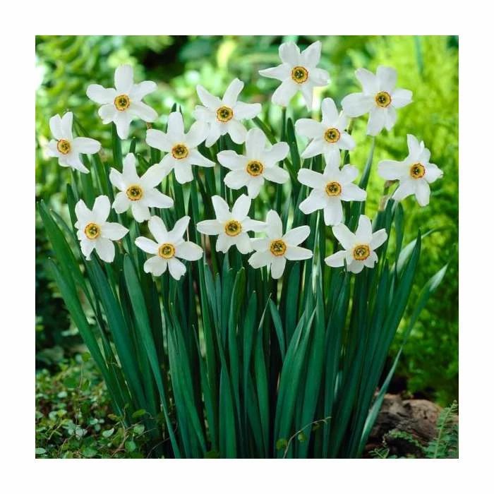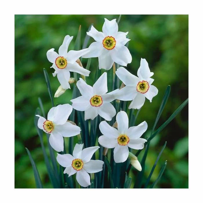 Narcissus ‘Pheasant’s Eye’ poses a unique take on the traditional Daffodil with its large, crisp white petals that encircle their yellow centres. Each centre further sports a red border, creating the appearance of a Pheasant’s Eye (explaining its memorable name). Highly fragrant, ‘Pheasant’s Eye’ provides a wonderfully vivid display when planted en masse along a bank or border, but looks equally as striking when planted in smaller quantities too. Unmatched in its intricate beauty, ‘Pheasant’s Eye’ makes a lovely cut flower, where its floral perfume will quickly fill a room.