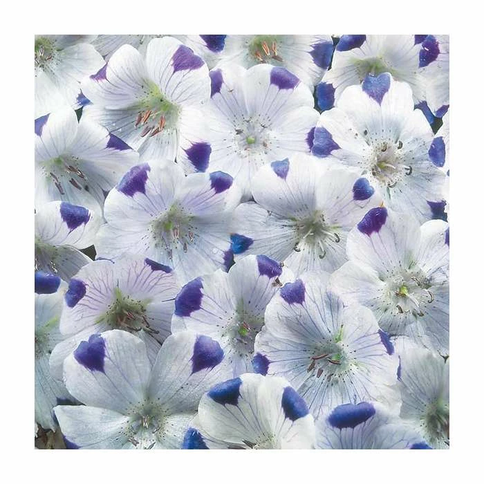 Our nemophila maculata Nemophila “Five Spot” seeds produce an unusual dwarf plant with pretty white flowers. The name “five spot” comes from the deep blue spots at the tip of each petal. These flowers are very easy to grow, and great for borders, edging, and rock gardens.