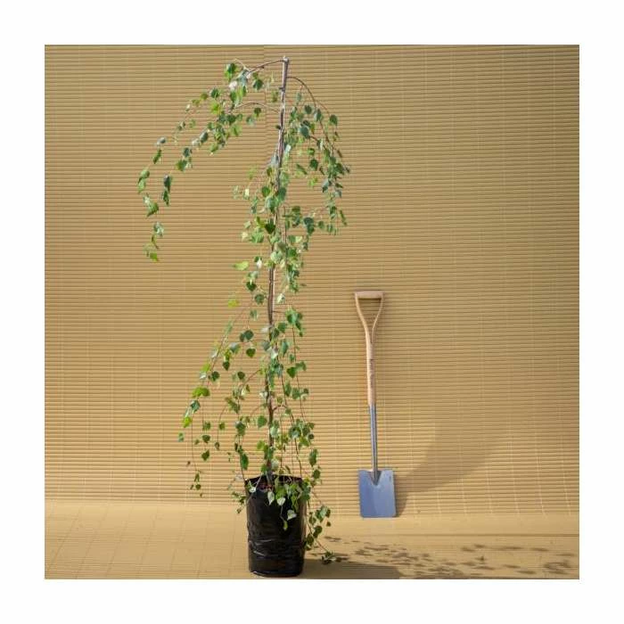 This classic weeping birch is a delicate tree, tall and slender, with branches which cause a large spread, creating an umbrella of leaves. Separate male and female catkins open in spring, adding another dimension to this beautiful weeping birch, which has peeling white bark, reminiscent of the closely-related silver birch. This will thrive in almost any soil, even wet and poorly-drained soils, thanks to the hardy nature of this tree.